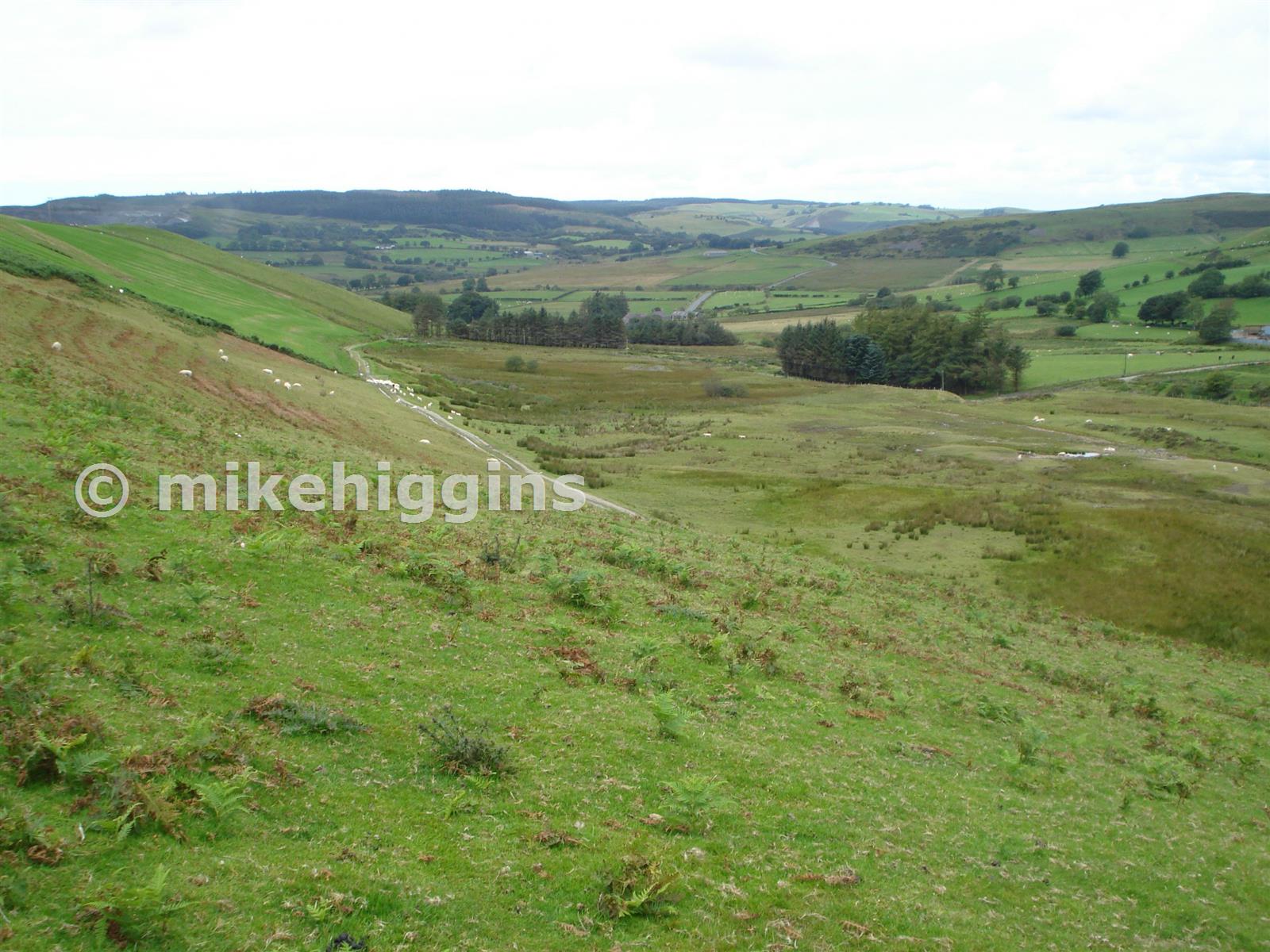 Looking west down Cwm Gwyddel. Waste heap in the middle distance.