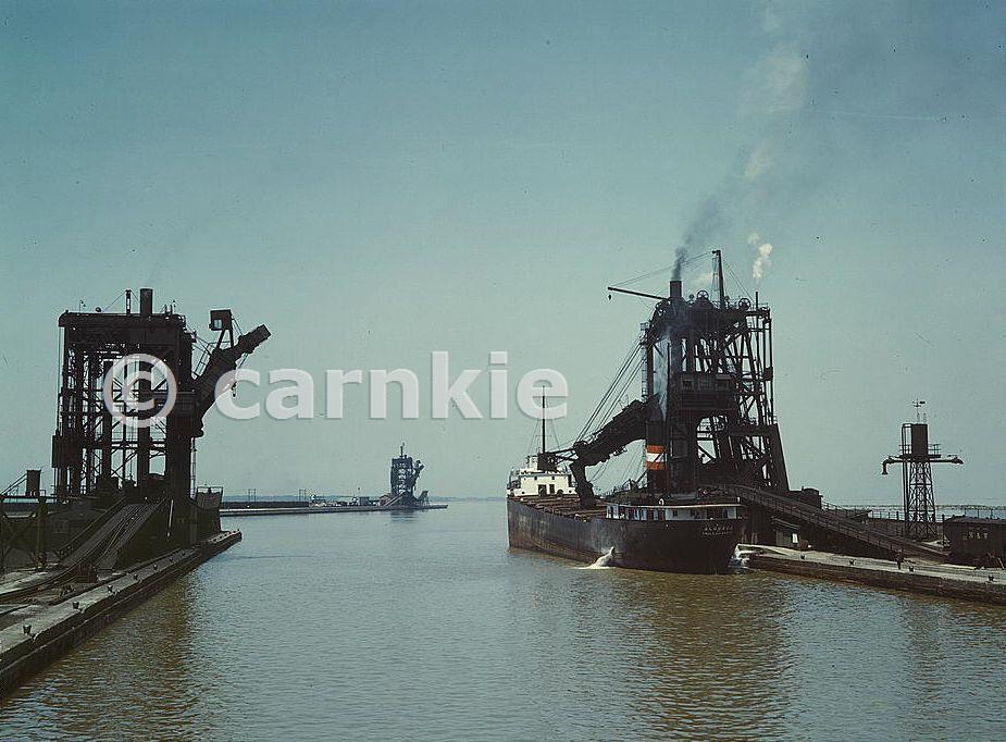Loading a freighter with coal at one of the three coal docks owned by the Pennsylvania Railroad. Courtesy Library of Congress, Prints & Photographs Division, FSA/OWI Collection, [reproduction number, LC-DIG-fsac-1a34819