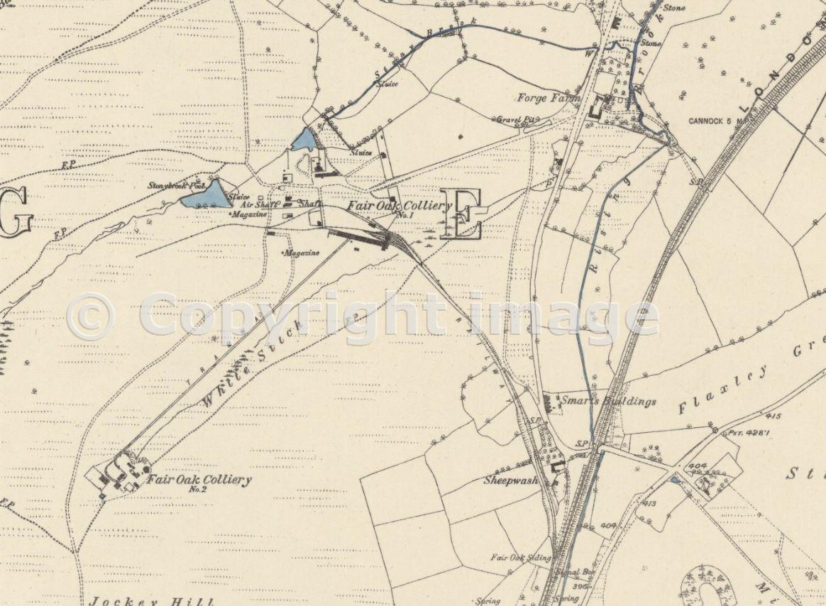 Map showing location of No1 & No2 collieries, tramway connecting the two, and link to main line.