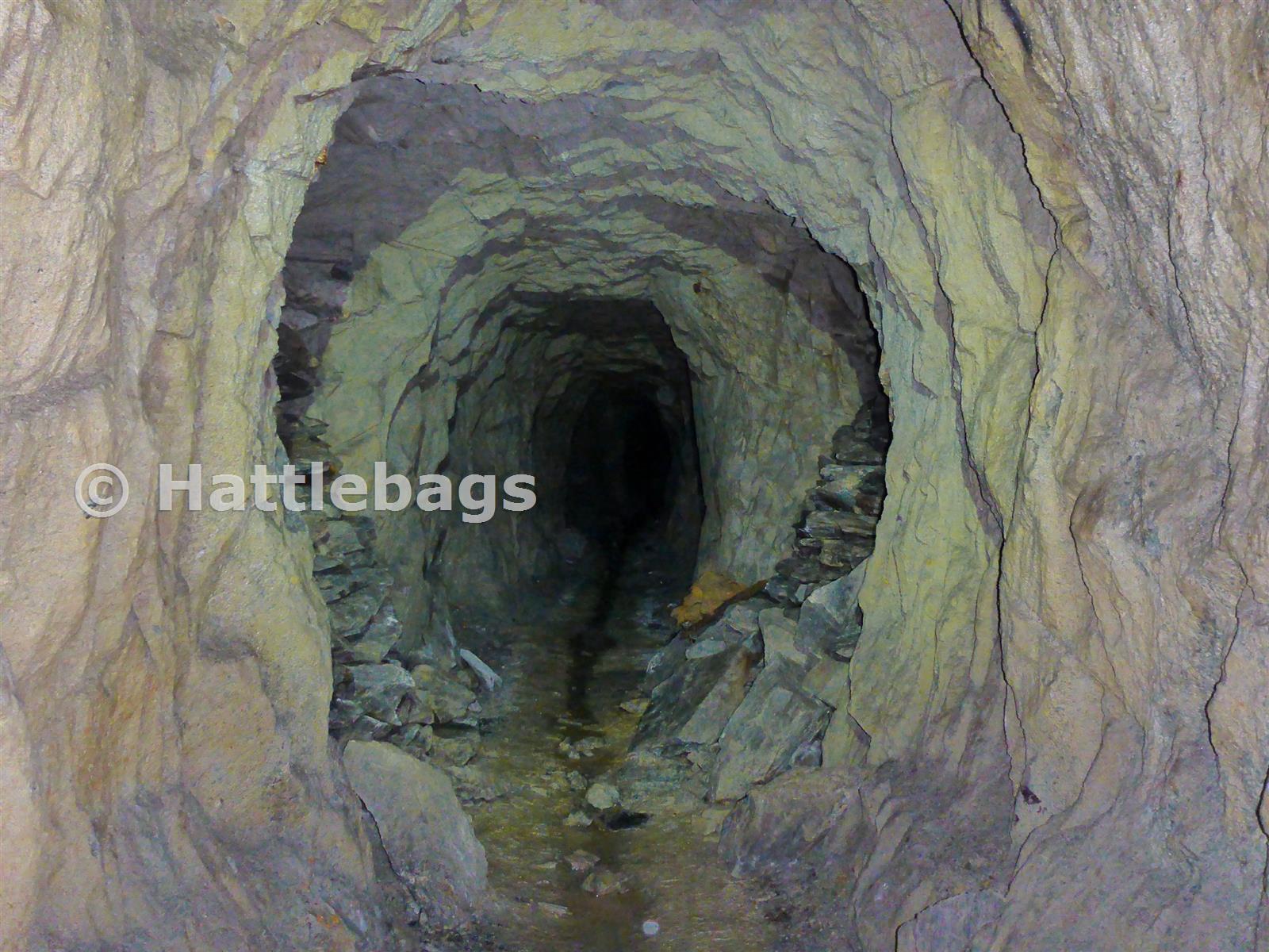 One of several cross cuts, with deads stacked up in corners to save the long haul out to the surface.