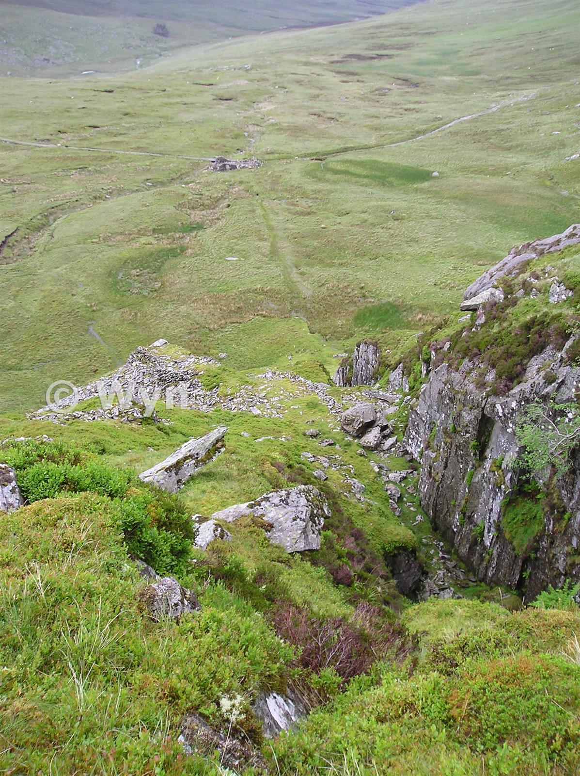 Taken from above the upper level, the dressing buildings in the distance and the outline of a possible tramway between.