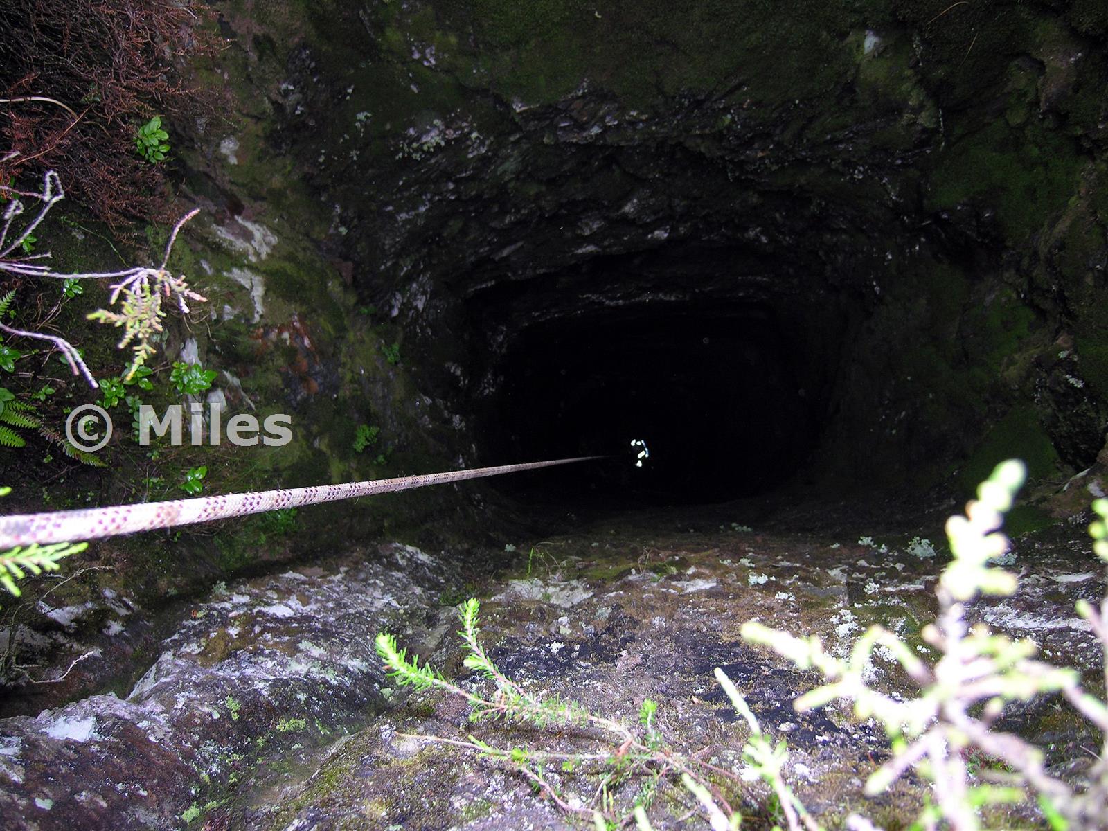 At the bottom of the shaft - we think the engine shaft but not 100% sure as it was not as deep as expected. I knew the hi-vis stripes would come in useful one day... Drws y Coed copper mine, Nantlle valley, north Wales.