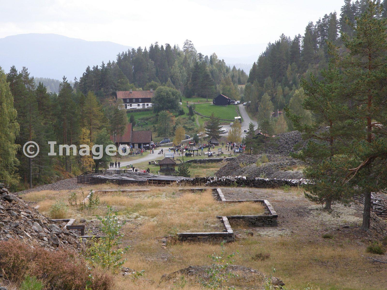 View south showing the foundations of one of the cross-shaped sorting houses.