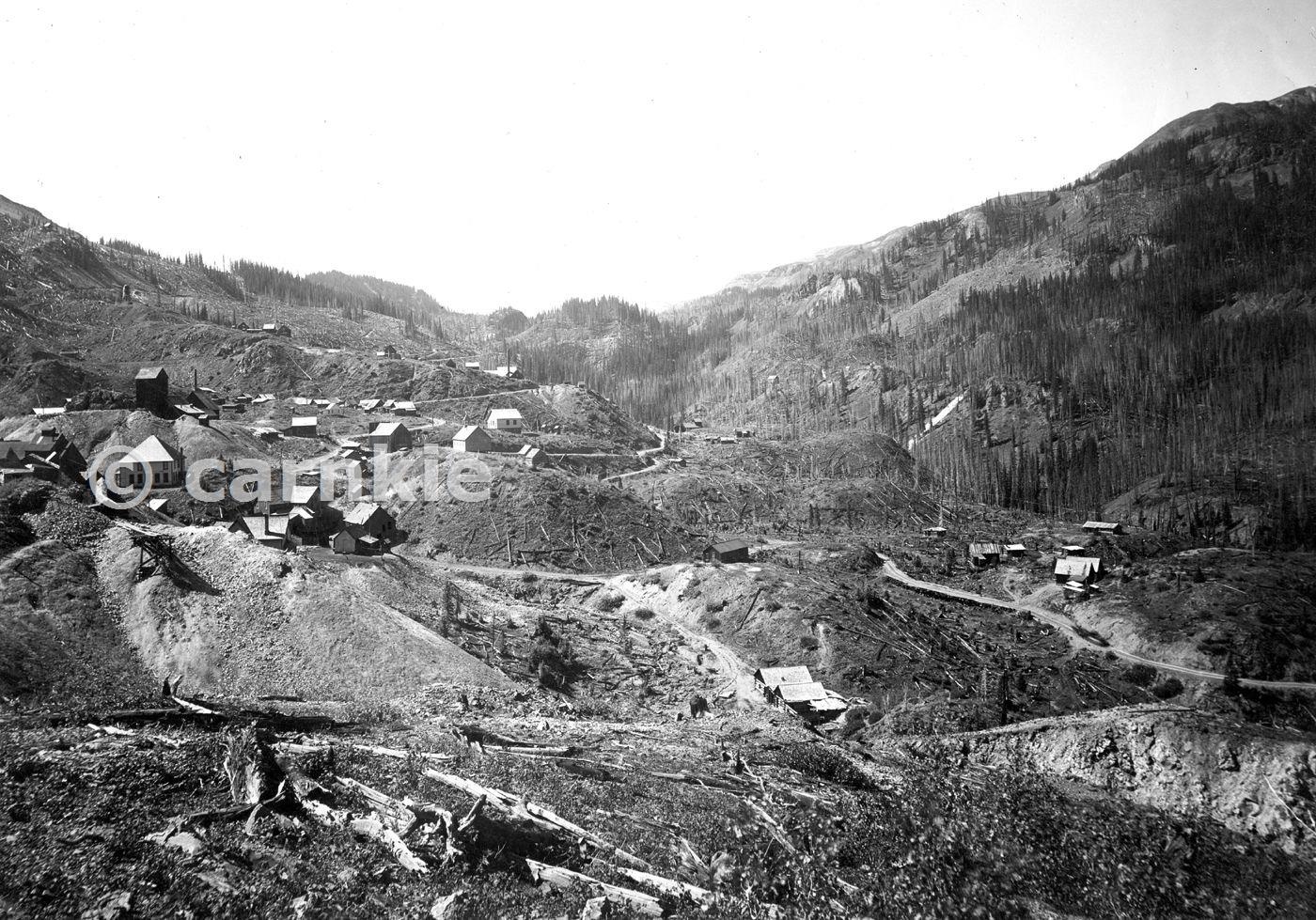 Looking south From knoll north of the Robinson Mine. Shows landslide topography about the Robinson, Guston, and Yankee Girl mines. Silverton quadrangle, Ouray County, Colorado. September 14, 1900. Courtesy U.S. Geological Survey. The USGS home page is http://www.usgs.gov.