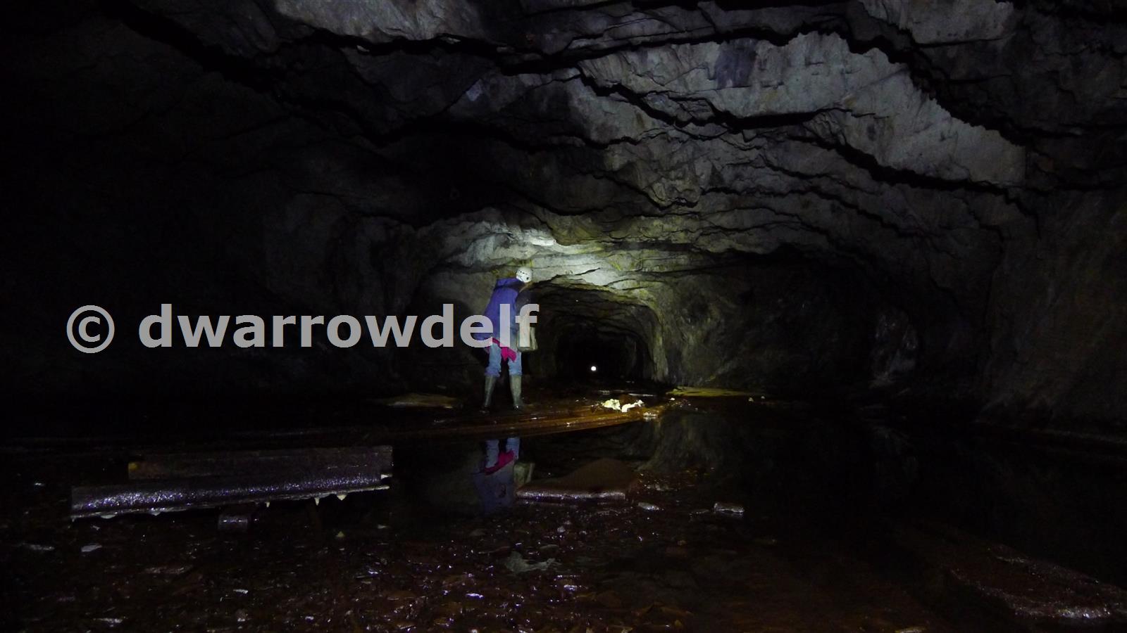 The bright speck in the centre of the photo is daylight:- At 2221 ft from its entrance to the inner sheave of the haulage system, 9 adit is possibly the longest in the Ffestiniog area