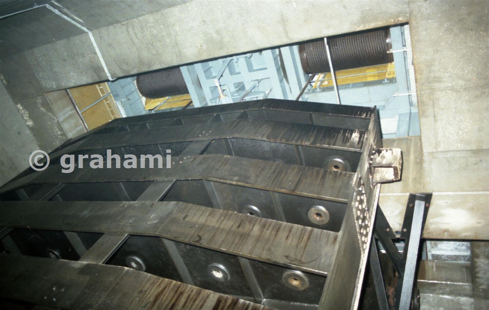 Looking up the gates to the winches