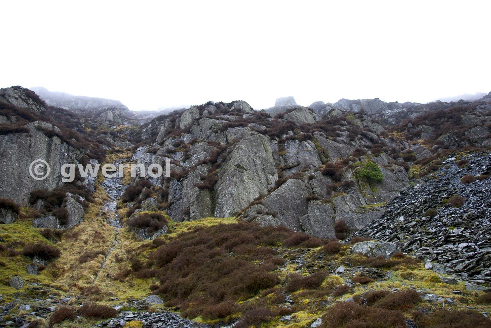 Looking up the course of the upper incline/sledway. Accounts state that this was not an incline, but rather wagons were lowered down a wooden track. The incline is extremely steep.