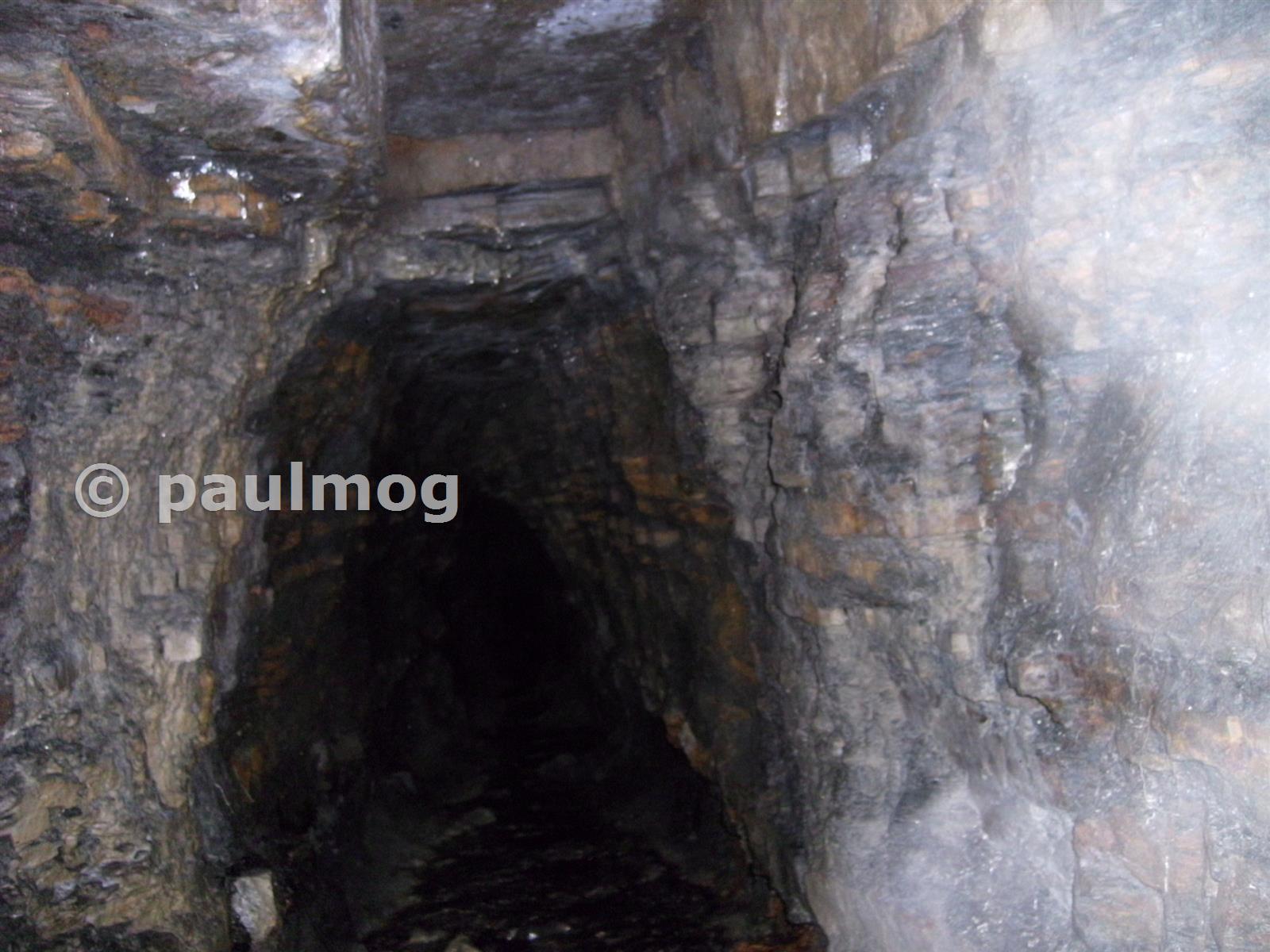 Inside the mine The glare on the picture caused by the pyrites in the strata.