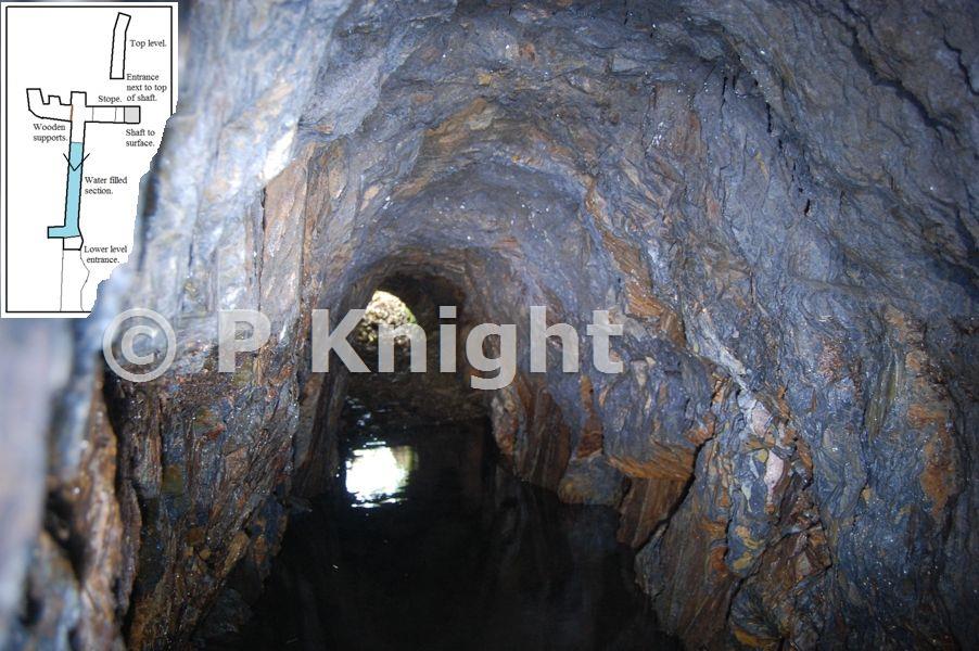 The level entrance, knee deep in water for roughly ten meters.