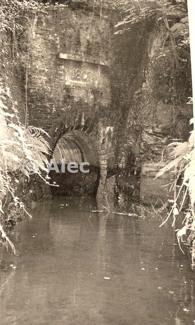 Taken 1965 on official visit during repair work to tunnel bore by CEGB. On the R of the portal is the walled-off shaft of Wheal Crowndale. Water in canal about 2' deep to enable vehicle access to tunnel bore. It's worth underlining that this was an authorised visit during periodic 'outage' of the canal for maintenance in the tunnel. The following year, 1966, the Lumburn Aqueduct, another major civil engineering feature that carries the canal over the Lumburn valley, was virtually reconstructed following leakage.