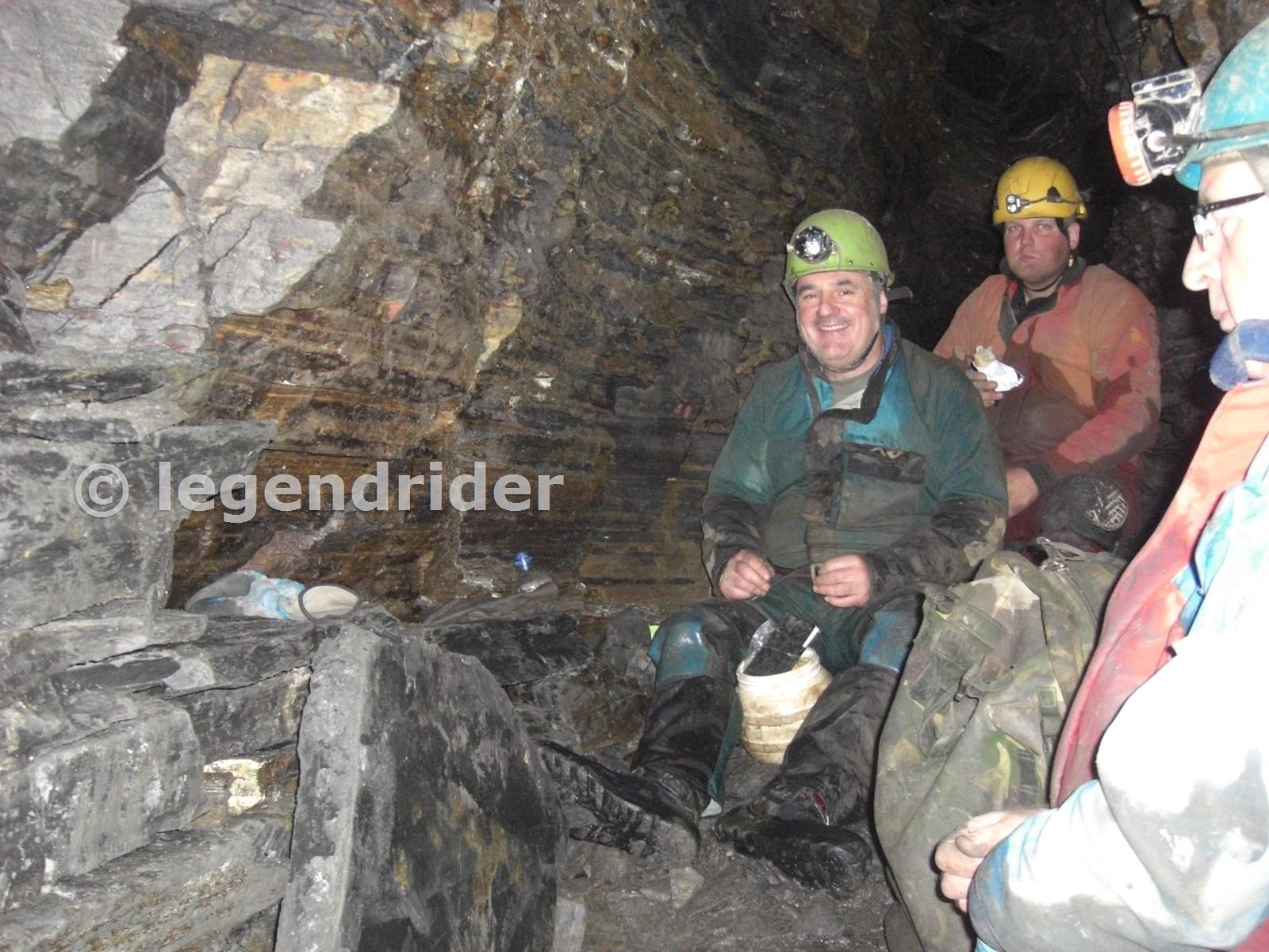 Mr Mike couldn''t be with us so here is obligatory lunch photo. Crosscut in shale beyond Incline, between Brigal Burn Vein & Caplecleugh Cross Vein