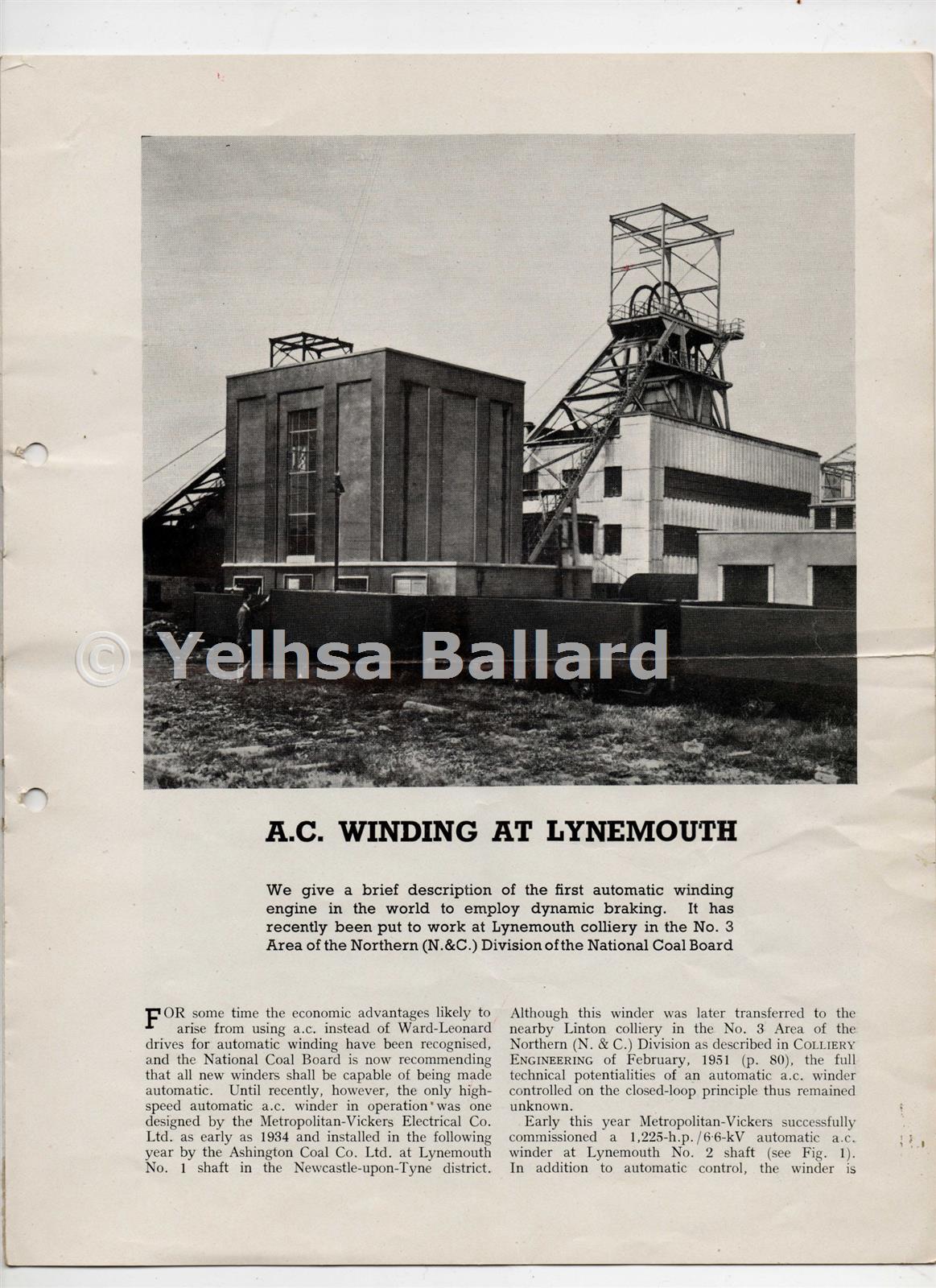 Technical details of the Local/Remote controlled AC winder installed at No2 Shaft in 1953. From a Metropolitan Vickers publication.