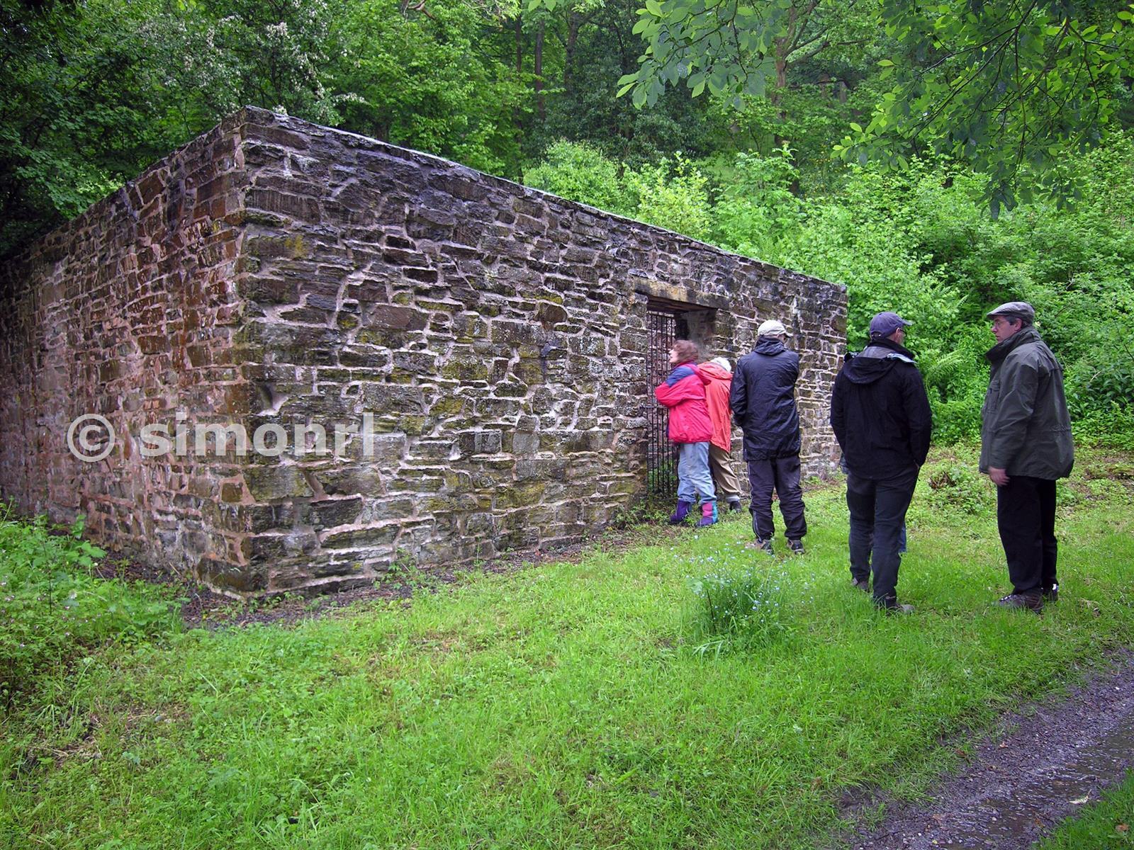 Explosives magazine demonstrating typical construction technique of very heavy walls and (no longer extent) weak roof to deflect blast upwards. Snailbeach Mine 06/06/2009