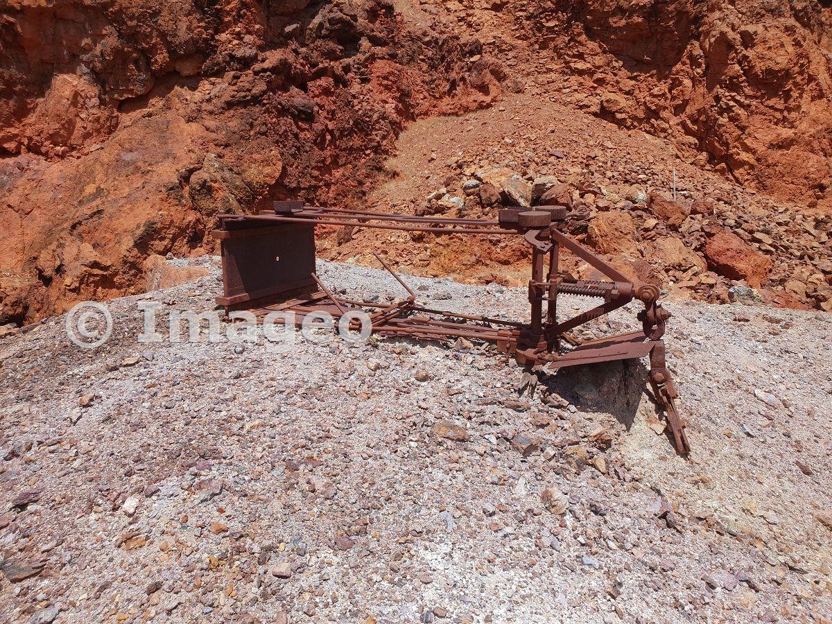 The frame of an old man carrying skip lies on its side but is in surprisingly good condition. One side of the gate has been removed.