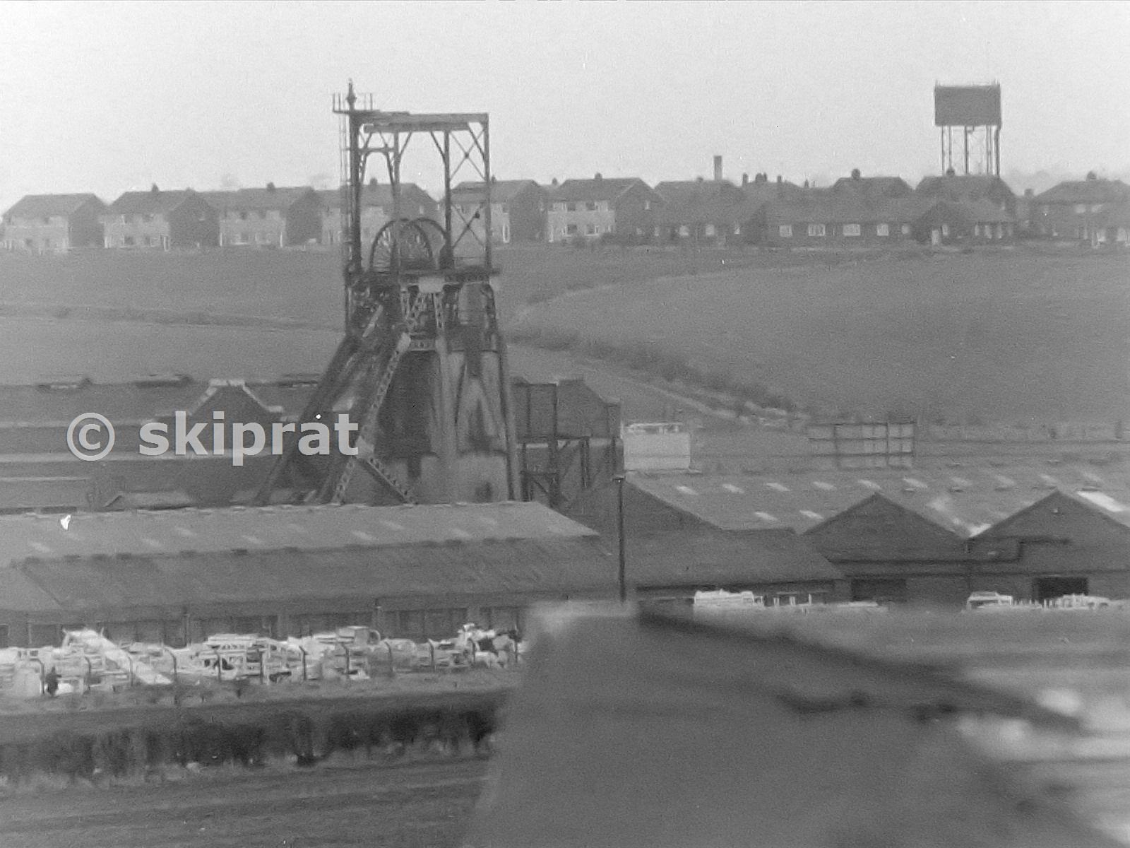 c1980s. Man riding shaft viewed from the west. Mexborough in the background. Manvers workshops in front of the headgear.