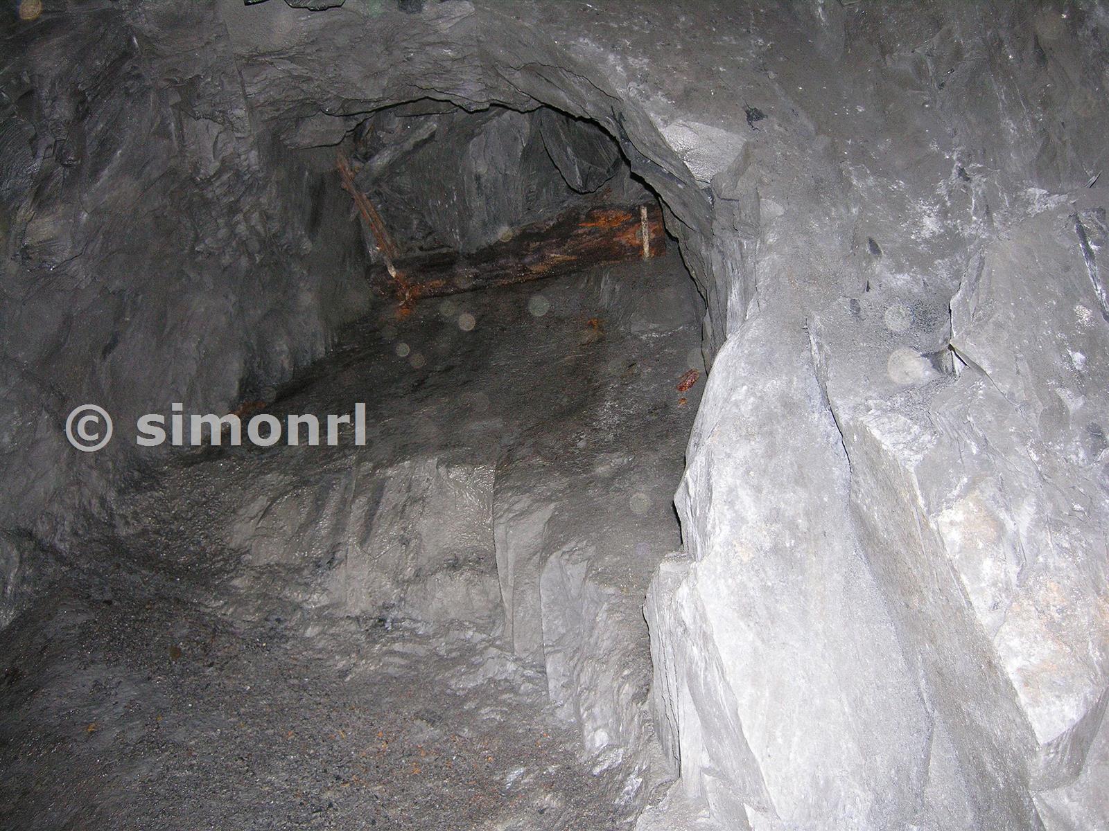 Material hauling shaft looking up chamber 12c to level 15c All locations worked out from survey in Slates from Abergynolwyn, courtesy of Thorpey Bryn Eglwys 11/05/2009