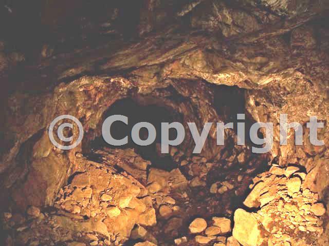 Mercury-impacted sluicebox and rock inside the mine tunnel prior to start of removal activities