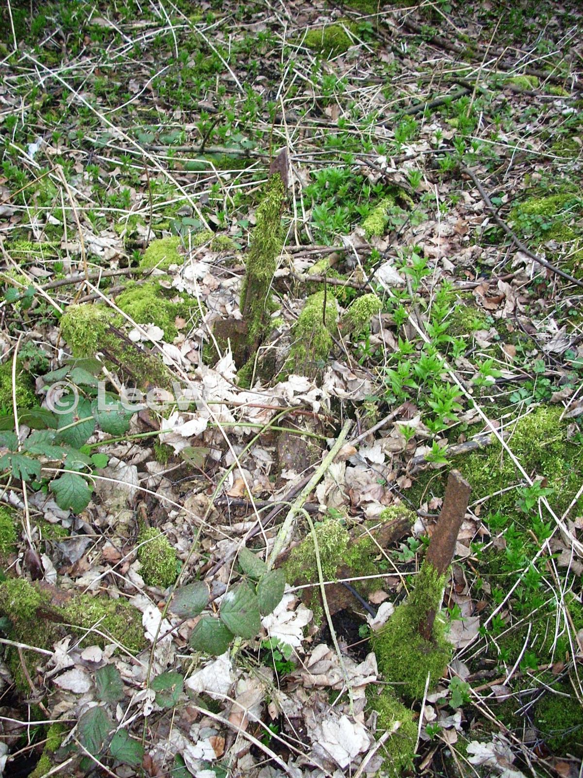 Metal stakes mixed in with some rubble possibly marking the site of one of the shafts (Mar 2011)
