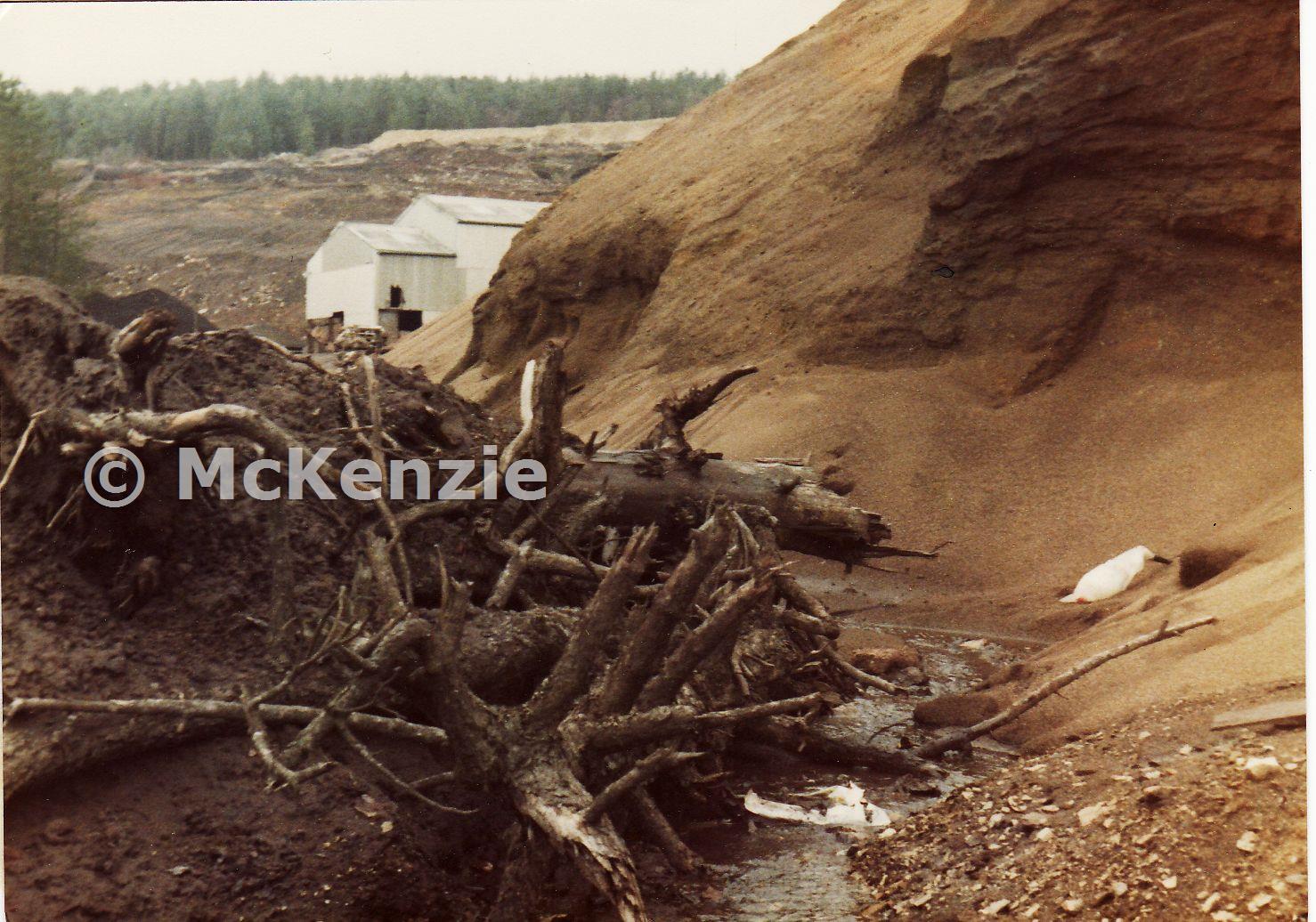 Just visible here is a building constructed in the late 1970's when the dumps on Devon Great Consols were being re-worked. This building housed the plant used to process the dump material.(see other uploads for interior shots). To the left of this building was once a massive black dump approx' 100 foot high...all this material was removed and put through the new plant. 1970-78 A company named Redcaves installed dressing plant to recover tin from the ‘white sands’ dump material below the 1920’s arsenic complex (presumably material from originating from Wheal Frementor in the mid 1920’s). A ball mill, 15 shaking tables, hydrosizers, cyclones and a helicoyd were used to produce a low grade tin concentrate (25% metal) at a rate of 10 tons per hour. The company after many name changes folded in the mid 1970’s as the price of tin plummeted once again.