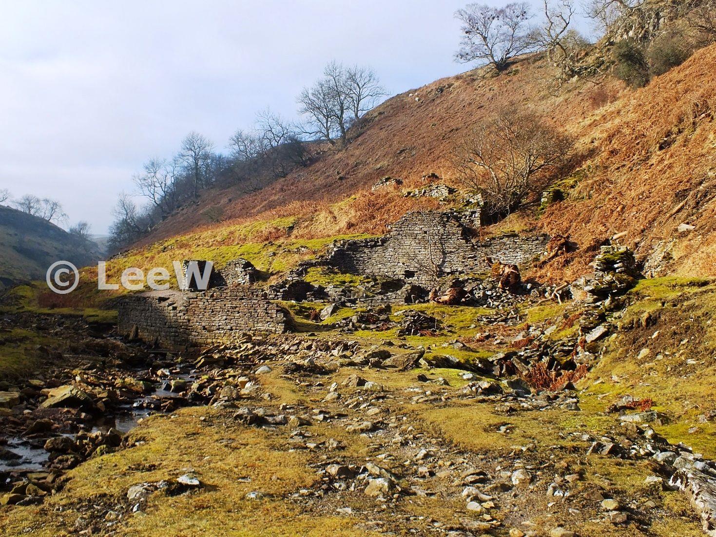 View looking back up at the mill (crushing?) site from the area of spoil tips