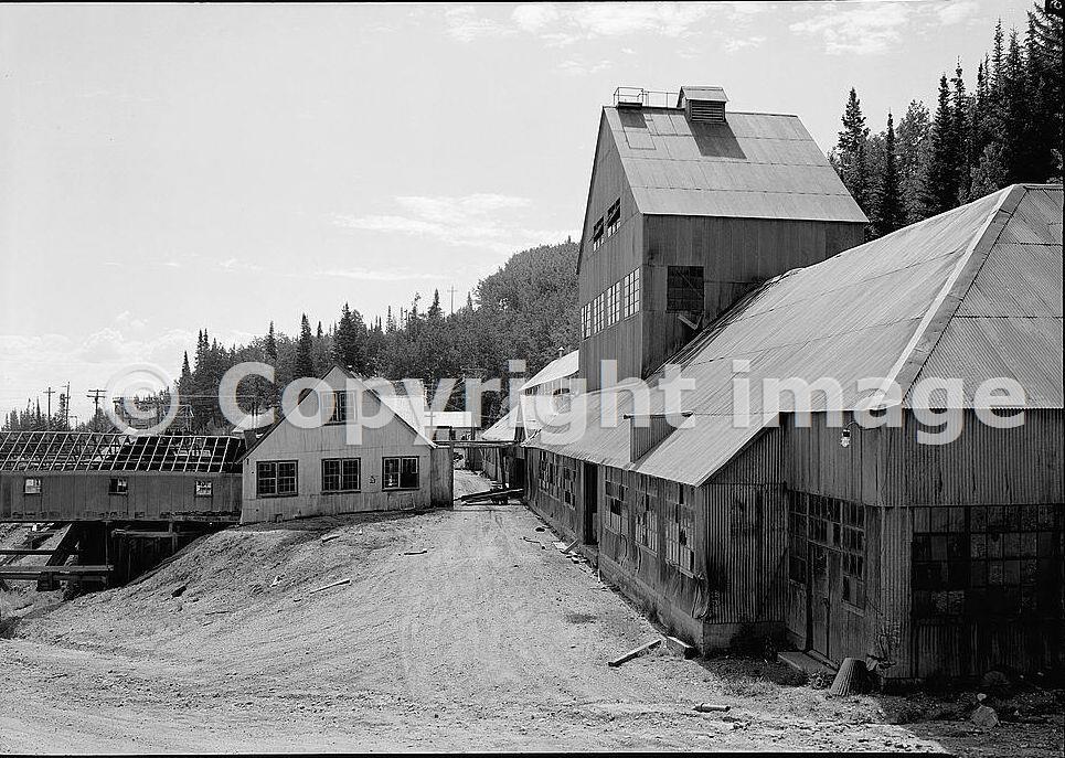 Jack E. Boucher, Photographer, August, 1971. MINE SHAFT BLDG FROM E: NOTE ROOF REMOVED FROM ORE CAR TRACK ENCLOSURE TO EXTREME LEFT. TERMINAL BLDG IS IN LEFT CENTER. CUPOLA-LIKE ENCLOSURE ON MINE SHAFT BLDG HOUSES SHAFT LIFT. Courtesy Library of Congress, Prints & Photographs Division, HAER, Reproduction number HAER UTAH,22-PARK.V,3A-1