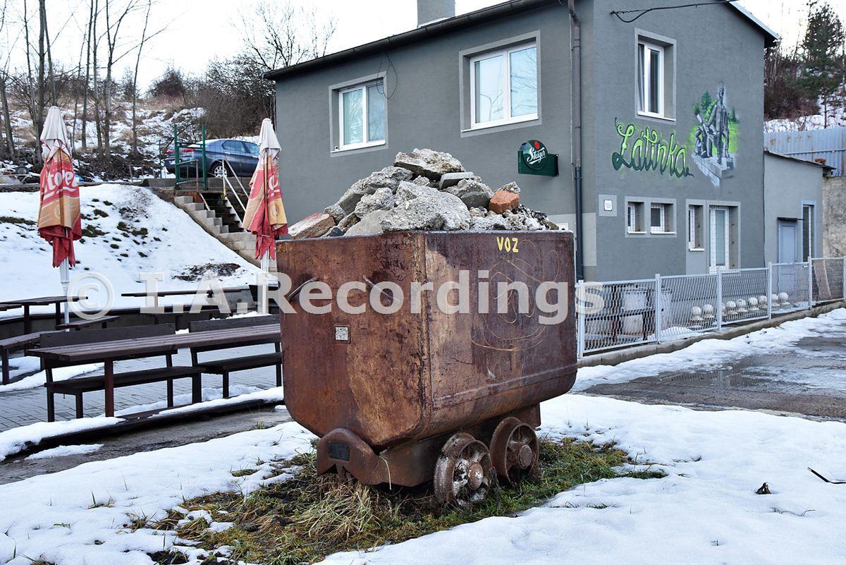 Mine tub outside the tavern (Latinka) by the entrance to Handlova brown coal mine.