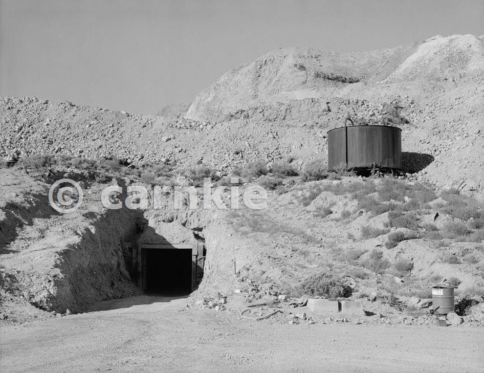 VIEW SOUTHWEST AT MINE TUNNEL AND WATER TANK (EAST SIDE). Courtesy Library of Congress, Prints & Photographs Division, HAER, Reproduction number HAER NEV,11-HAWT.V,1B-2