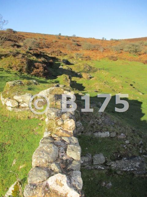 The back wall and base of the stack that formed the dry and other buildings at Vitifer; looking north towards the old workings which are on the skyline