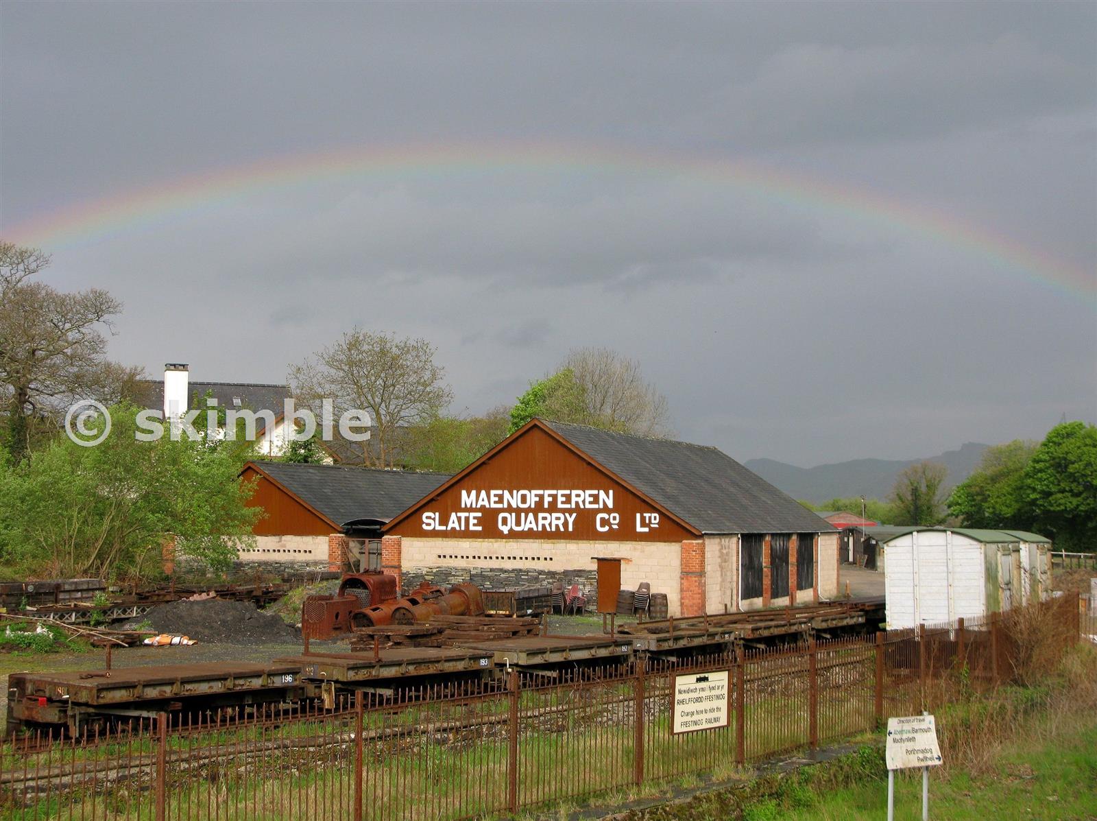 Formerly used for storage of slate and transhipment to the Cambrian Railway, from whose station the photo is taken. 25/04/2009