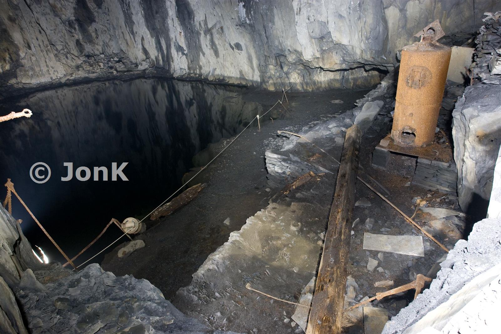 Remains of steam crane. Boiler and part of timber jib support evident. Remains of jib in water to the left.