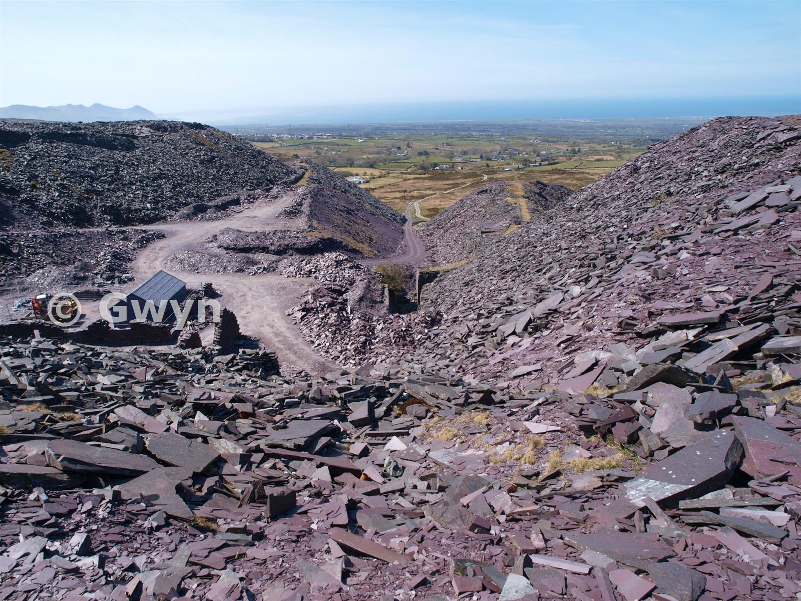 Landscape view looking W. down the remains of the incline and exit route to the railway connection at Drumhead. April. 2010.