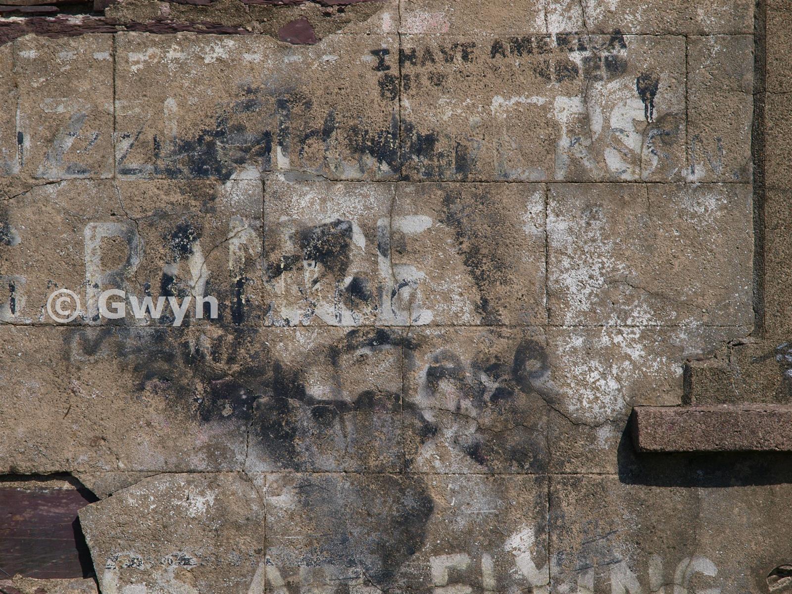 Graffiti on the side wall of old quarry office. But is it Art? April. 2010.