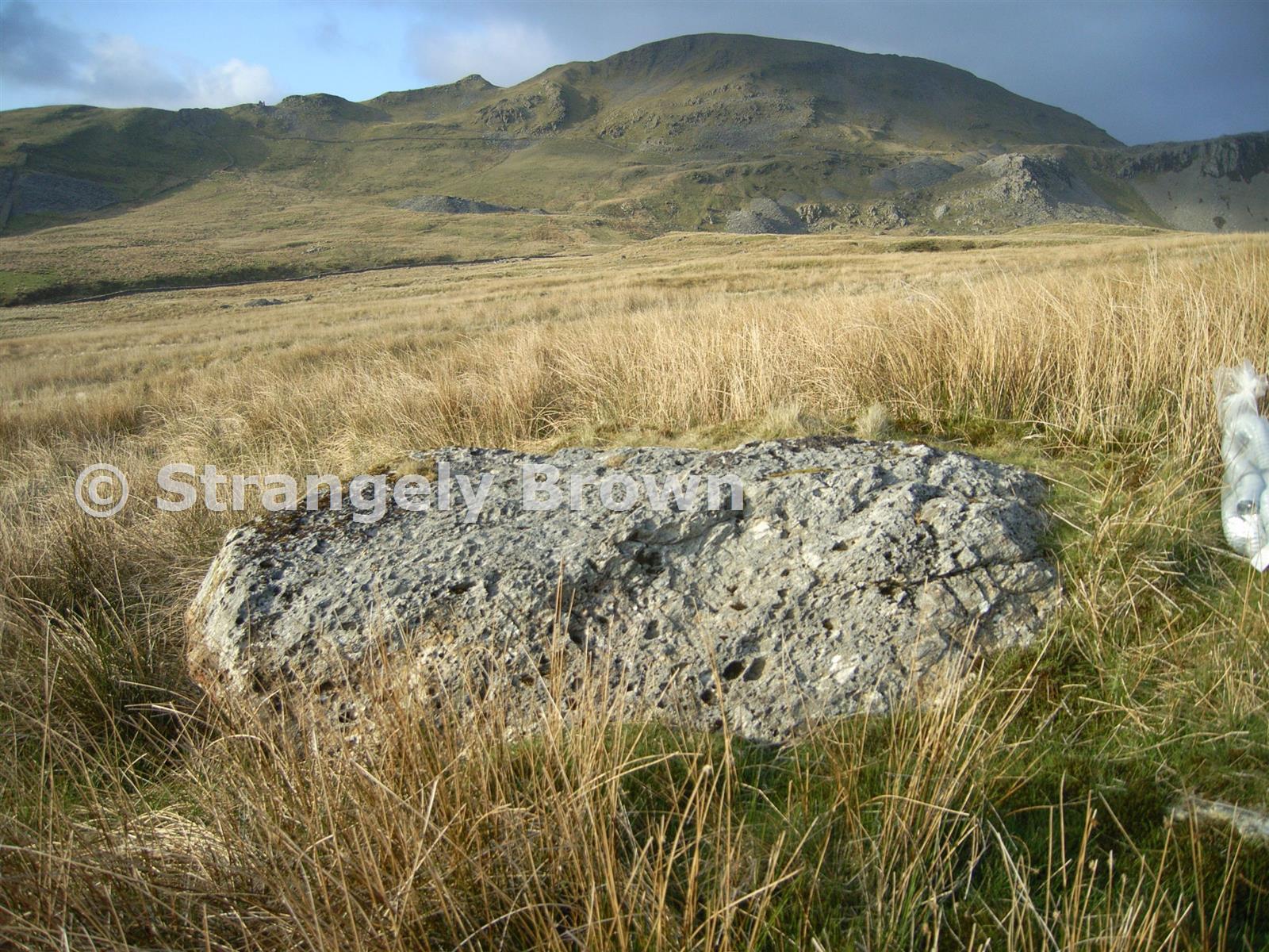 Fron Boeth open cast to the left, 18 mill level center, just to the left and levels 17 plus climbing to the right. Tramway drum house is top left. Rock in the foreground is severly heat damaged slate full of gas bubbles and partially melted.