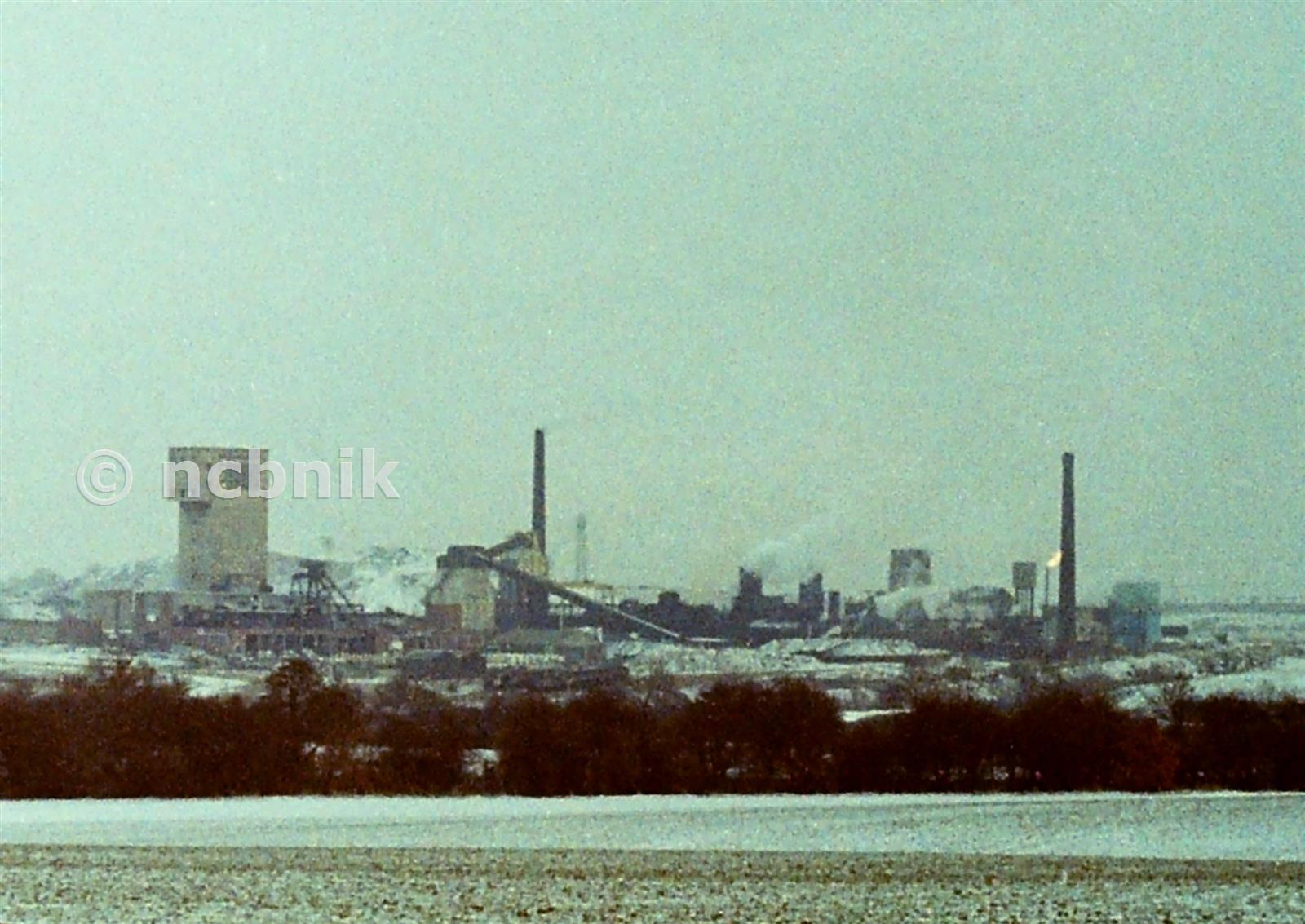 This is a cheeky ''two for the price of one'' photo in that the last remnants of Monckton colliery were still there; to the left the Koepe winder with the 2 concrete fan evasees (still there 2016). Moving slightly right and in front you can make out the remains of another headgear, minus wheels. As for the coke works, (being demolished as I write this), note the little blue gasometer to the right, the wooden cooling tower near the centre and the second tall chimney (only the left hand one survived to closure).