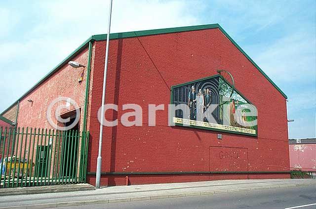 © Garth Newton Licensed for reuse. A plaque underneath this mural on one of the original buildings of the former colliery reads "The mural artwork was produced by students of the New College Nottingham Basford Hall in co-operation with Maplebeck Holdings Limited, who have dedicated it to the people of Eastwood. The ceremony was performed by Cllr. Jack Wormall on the 24 September 1999". Two quotations below the pictures are both by D H Lawrence. On the left it reads ".... there was a sort of inner darkness like the gloss of coal in which we moved and had our real being" (1930) and on the right ".... the east was tender with a magenta flush under which the land lay still and rich" (1913). Two contrasting views of the same landscape - the goal on the wall is by local artists unknown