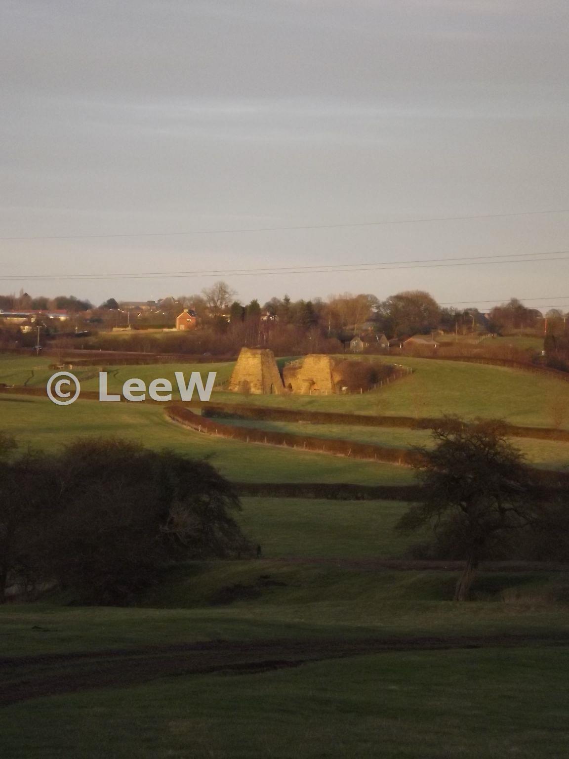 Shot from path near Knob Farm taken looking across the shaft mound for Adams Pit with Morley Park Furnaces in the distance. Feb 2012