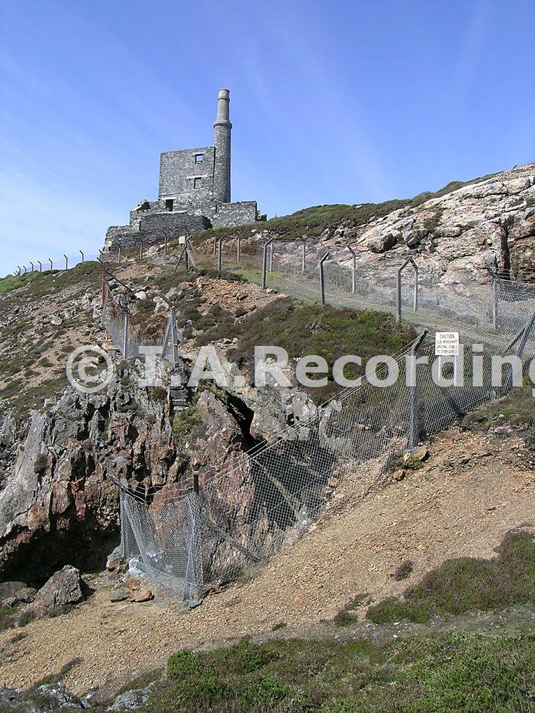 The 1862 Man-engine house, built by Cornish engineers Michael Loam & Son. In the foreground are fenced-off stopes or gunnises that come to surface.