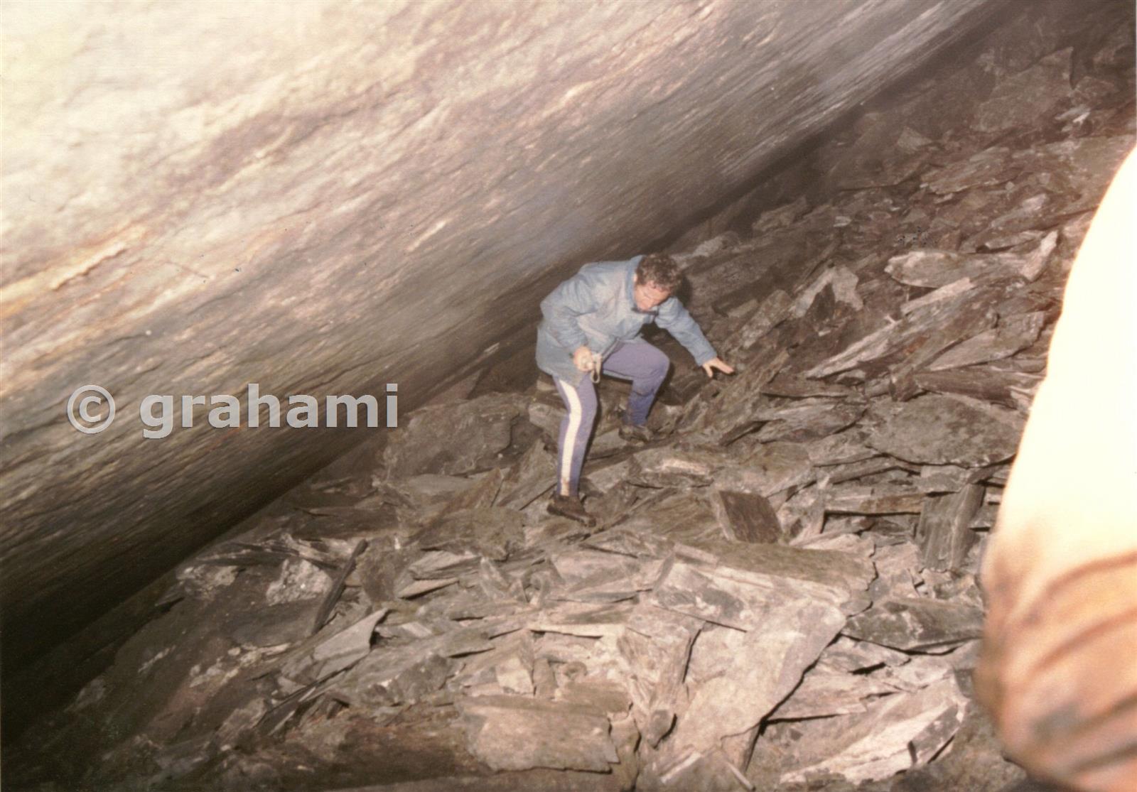 The squeeze was from floor 1 (boiler chamber) into the next chamber which had a negotaible fall up to floor 2. He did have a helmet! I seem to remember it fell off just before this picture and he had to go back and get it!