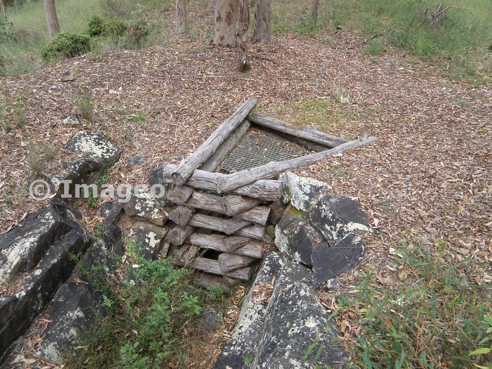 The small shaft at the end of the small open-cut at Never Beat, Brisbane Forest Park - suitably doctored by the EPA in the name of safety.