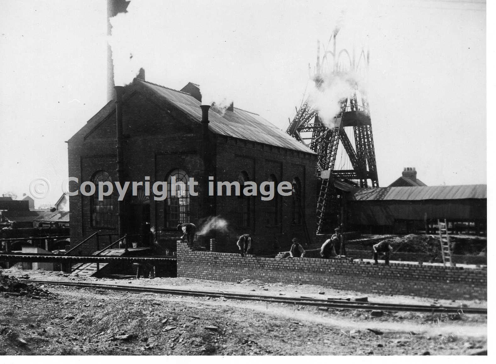 Construction of No.4 shaft winding house, No.3 shaft in the background.