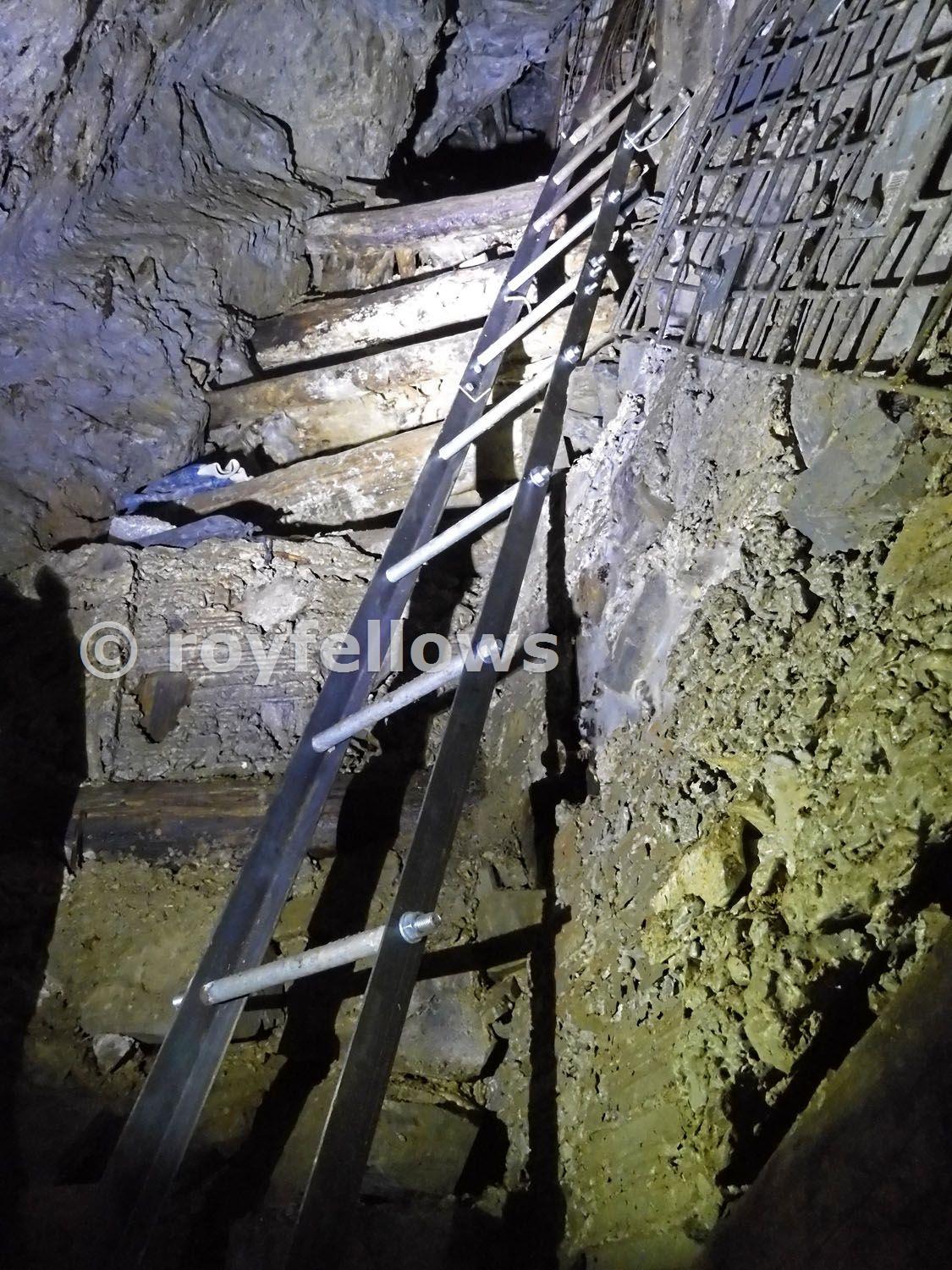 The bottom ladder had failed through the dry rot and so the pre-treated top ladder was relocated to the bottom, and replaced at the top with the new steel ladder.