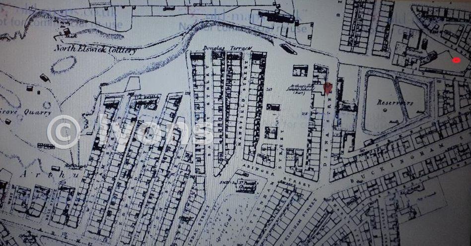 Interesting map showing North Elswick in completely different location, Now present day Liddle Road within a housing estate at approx. grid ref NZ234644. The red dot top left is the site location but listed on the map as "Firebrick Manufacturing" although Pit street and Pit Lane are either sides of the site. Elswick Colliery was located near Mill Lane at approx. grid ref NZ230641. allotments and industrial building occupies the site now.