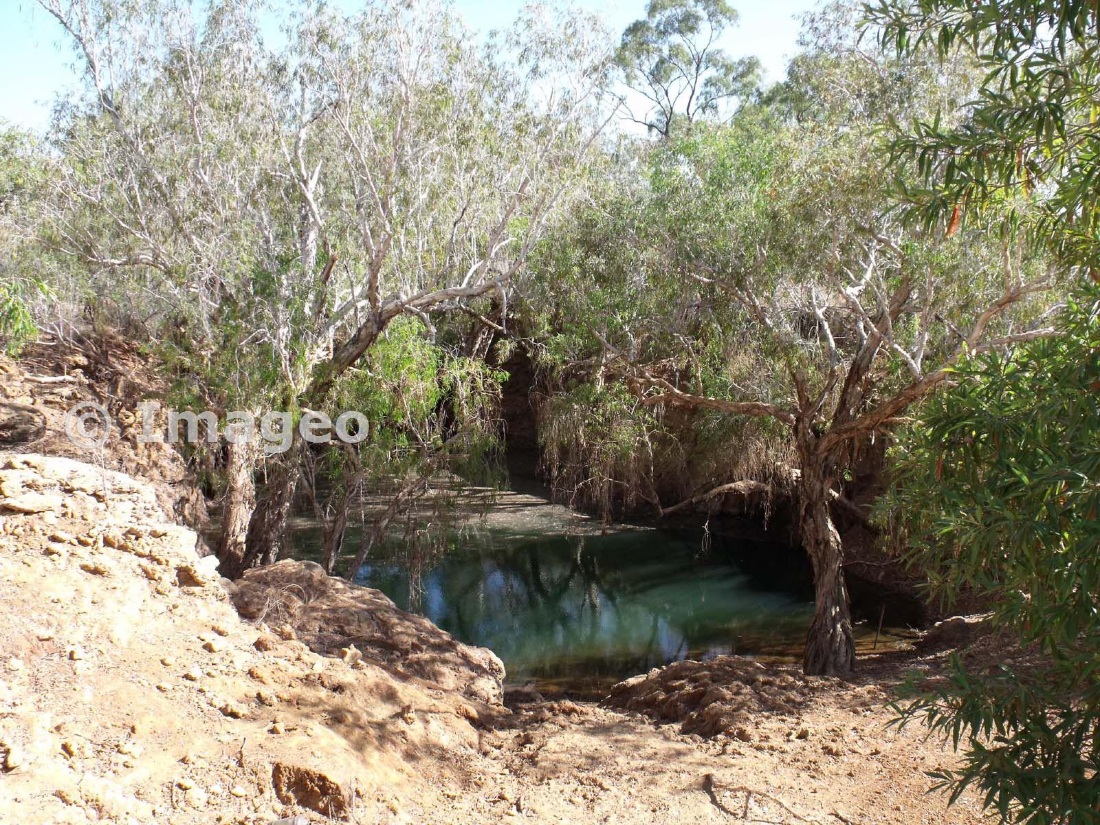 A view of the flooded northwestern part of the open cut workings. Water level is only about 5m below surface hereabouts.