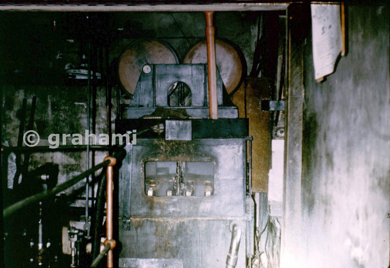 Another of the late Rodney Weaver's photos showing the incline in operation. This is the liquid controller in the motor hous according to him "boiling merrily, with flahes of lightening amongst the steam"