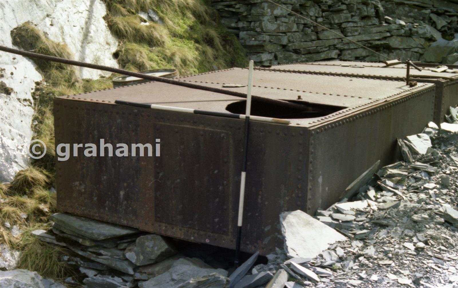 Just "behind" the half-buried HIK buildings were these two iron tanks. These were all that remained of the "G Balance" an inclined water balance that connected DE floor with G floor again from the 1850's until the 1920's when it was dismantled.