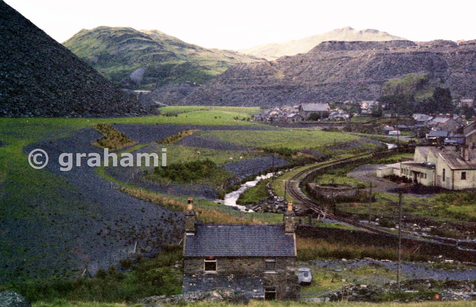 The actual junction is to the right of the picture, just out of shot. The GlanyPwll incline connection ran in front of the house and a row of cottages no longer there. In the background is the landscaped area which obliterated the original FR course to Dinas.