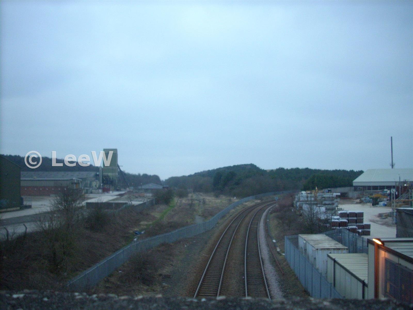 The Old Mineral Railway is the one on the right and still in use as the Robin Hood Line, the LNER line is the path go straight between both of the spoil heaps (Mar 2011)
