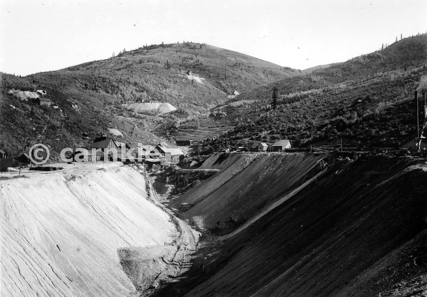 Mines in upper Ontario Canyon, Ontario mine in middle ground, shaft No. 2 at left, shaft No. 3 at right, Wabash shaft in center. In background Naildriver shaft at right, New York shaft at left. Courtesy U.S. Geological Survey. http://www.usgs.gov