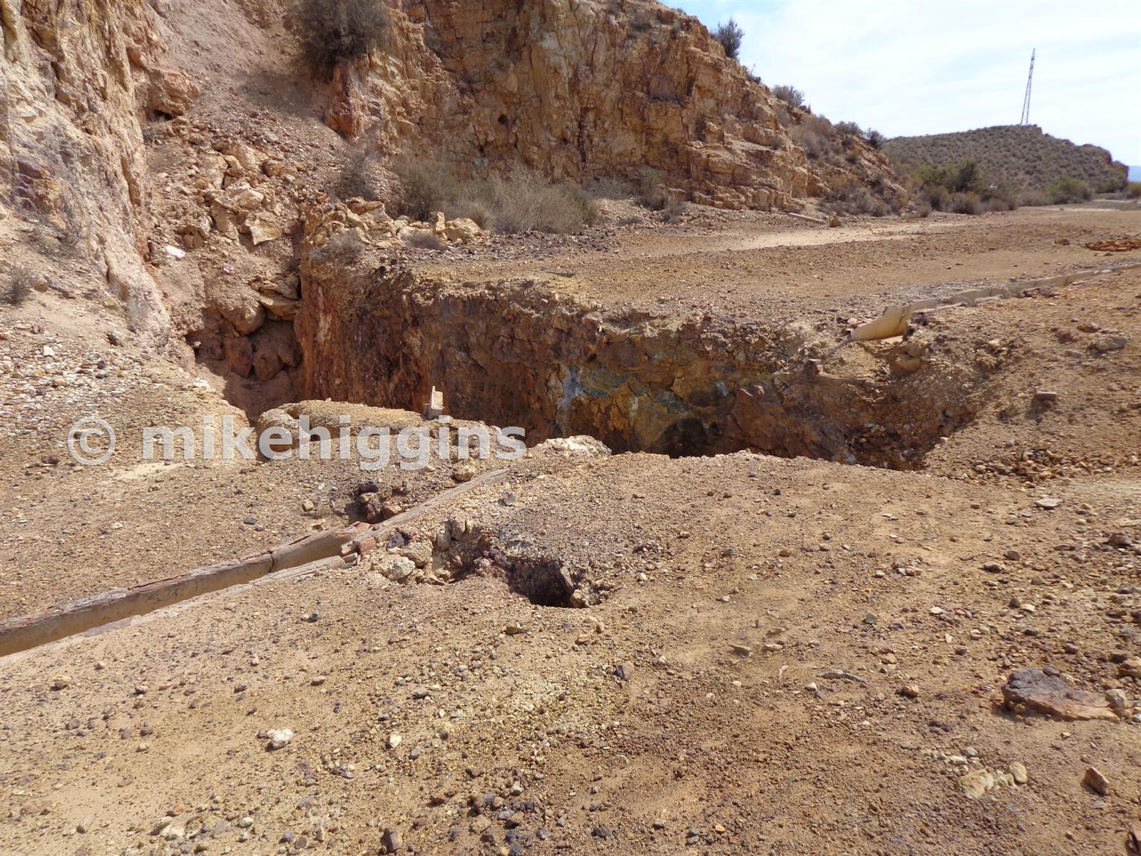 Opencut to the south of the mine. Note the lined channel running between the San Tomas and San Jose mines has been cut by the excavation.