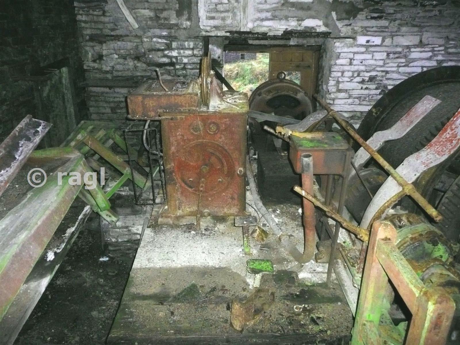 Bench to left, winch with clutch controls to right. Red indicator box in background.